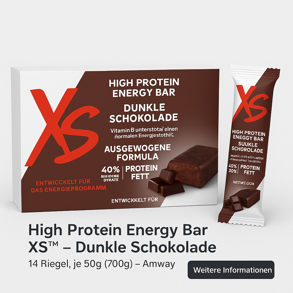 Der XS™ High Protein Energy Bar – Dunkle Schokolade ist nicht einfach nur ein Snack. Er ist das Ergebnis sorgfältiger Forschung, einer smarten Nährstoffkombination und dem Ziel, Menschen im Alltag, Beruf und Sport effektiv zu unterstützen.