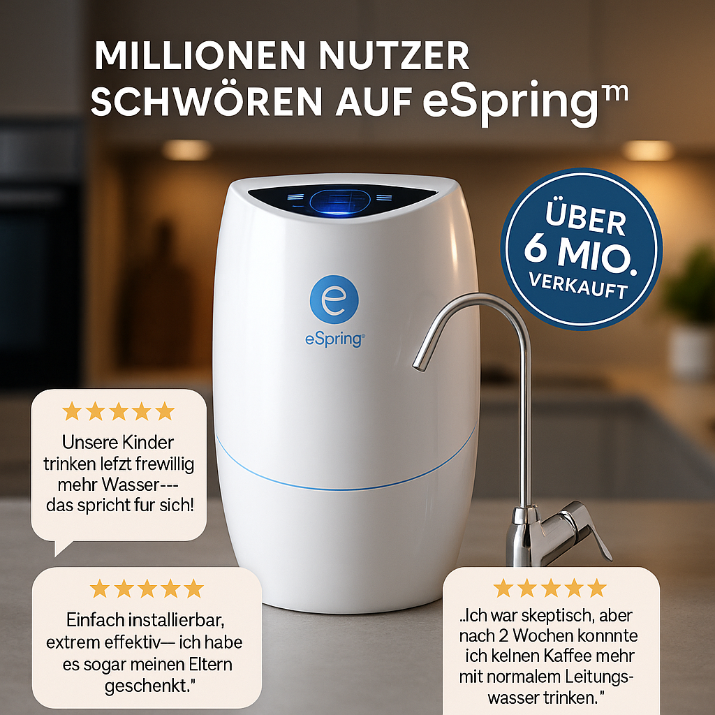 Wer das eSpring™ System einmal nutzt, versteht, warum es weltweit Millionen Anhänger hat. Es ist nicht nur ein Wasserfilter – es ist ein Versprechen für Qualität, Sicherheit und Gesundheit. Und für uns alle, die mehr vom Wasser wollen, als nur Flüssigkeit.
