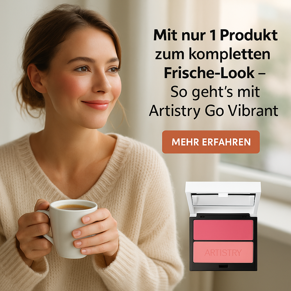 #FrischerLook #1ProduktBeauty #MorgenRoutine #WangenUndLippen #ArtistryGoVibrant #BeautyTrick #GlowToGo #SchnellSchön #NoMakeUpLook #BeautyIn1Minute