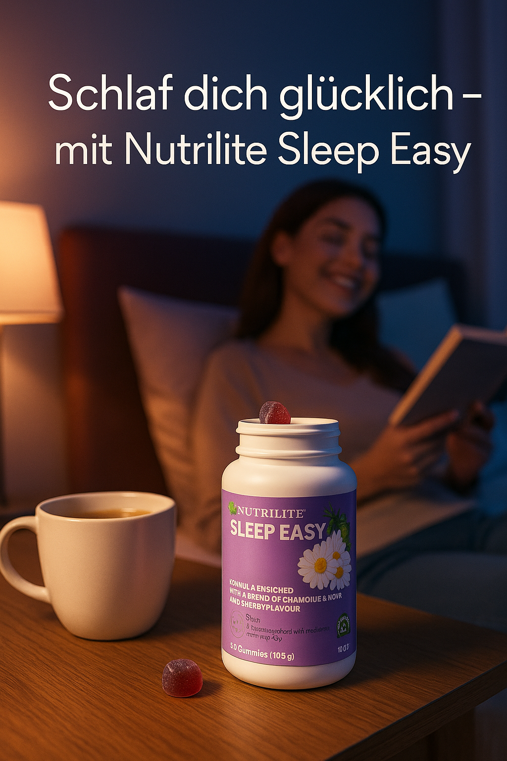 Du wälzt dich nachts von einer Seite zur anderen, während dein Kopf noch immer um die To-do-Liste von morgen kreist? Willkommen im Club der Millionen Menschen, die mit Einschlafproblemen kämpfen. Doch jetzt gibt es eine einfache, natürliche und leckere Lösung: Nutrilite™ Sleep Easy von Amway. Ein Gummidrop. 30 Minuten. Und dein Körper kann zur Ruhe kommen.